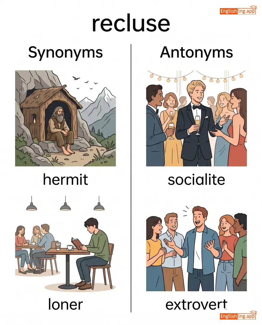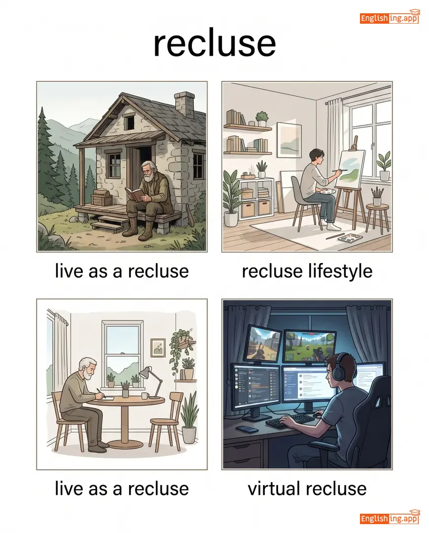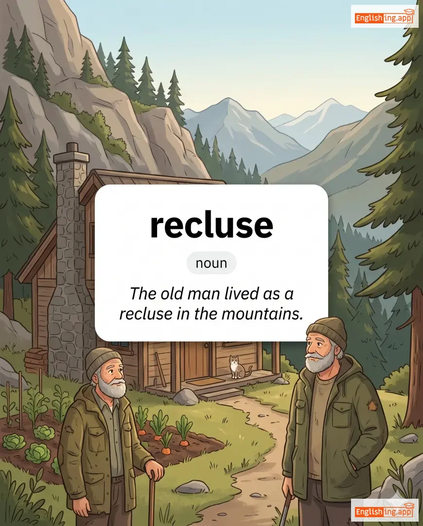 A person who lives alone and avoids other people; someone who lives a solitary life.
