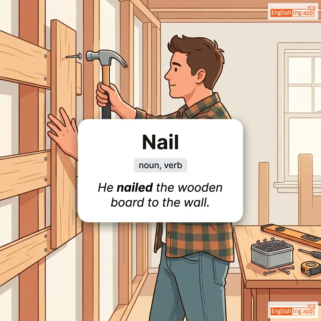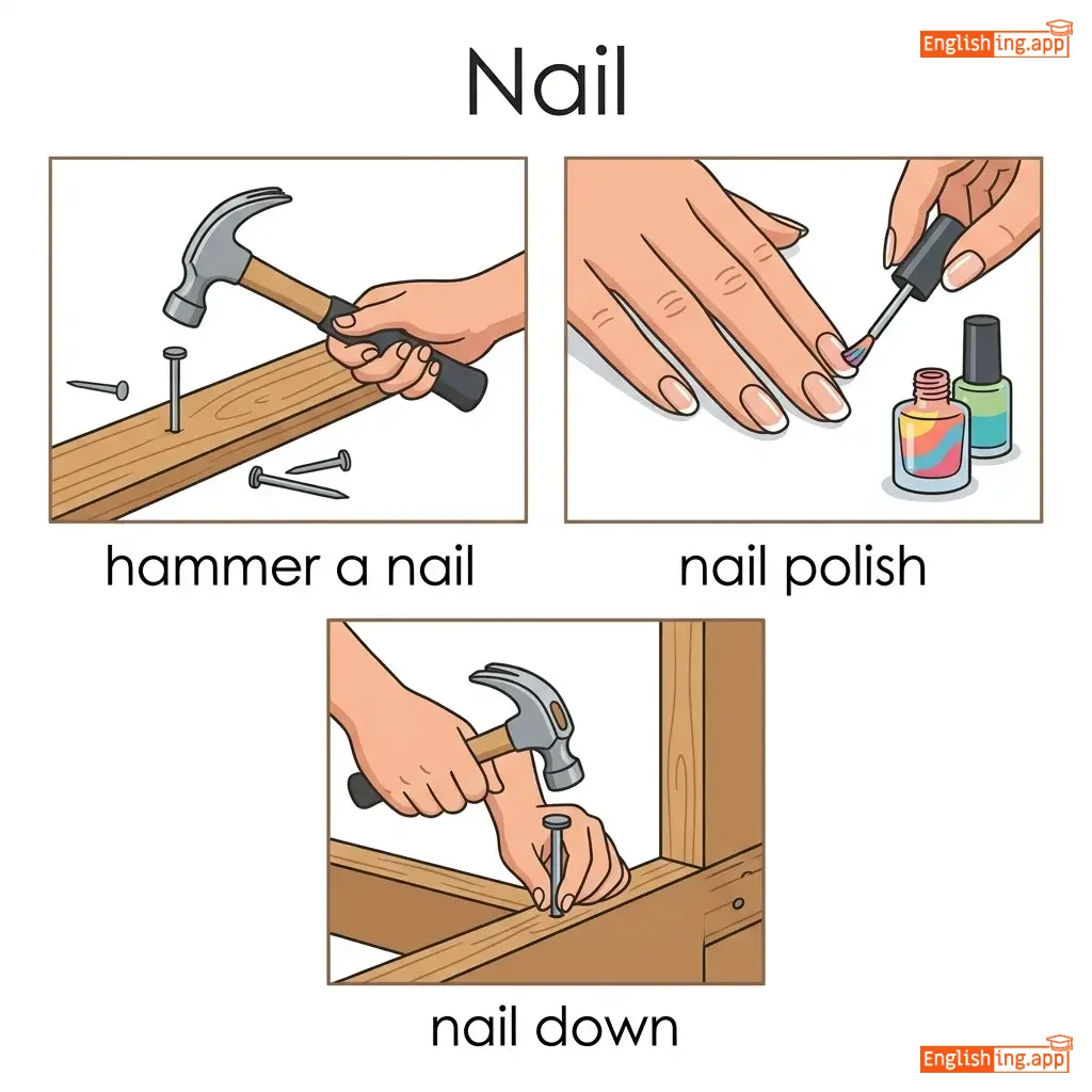 锤子 = 锤打,想象一下你用锤子把钉子钉进墙里!