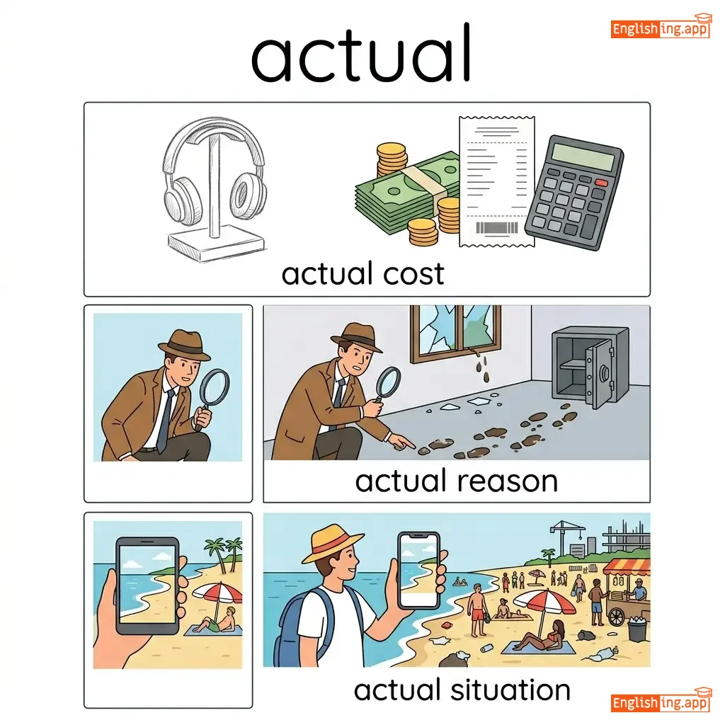 actual cost, actual reason, actual situation, actual fact