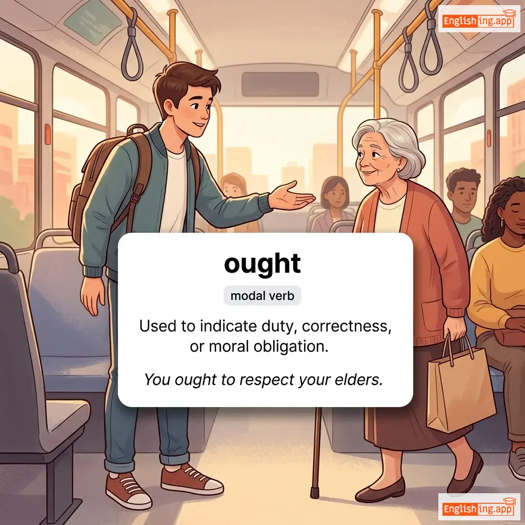 Ought的意思是应该,记住'ought to respect'意思是'应该尊重'。