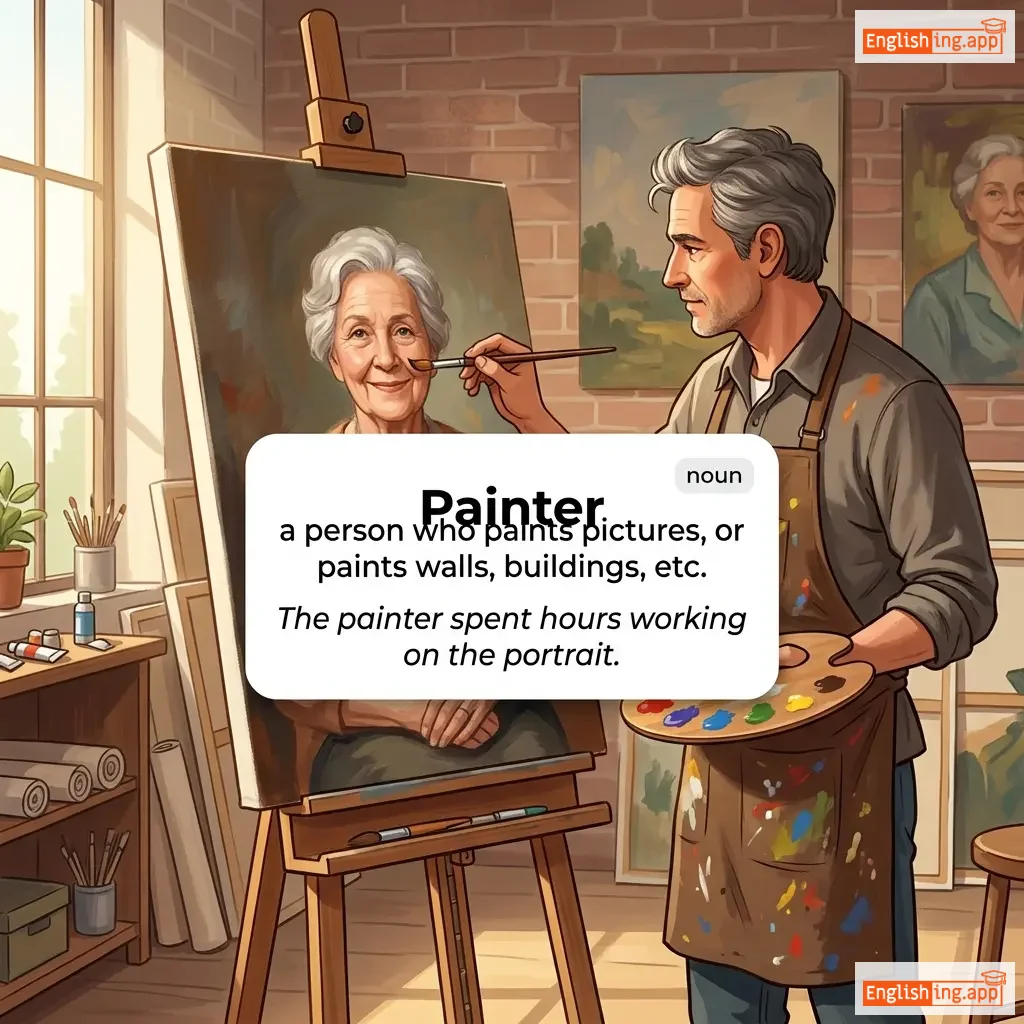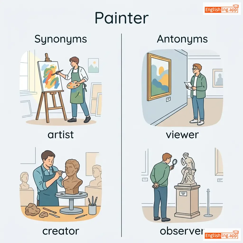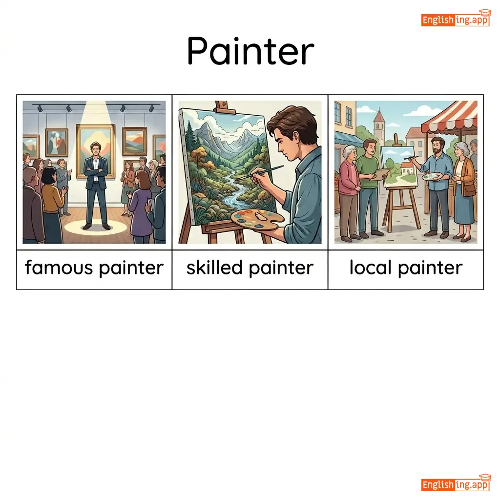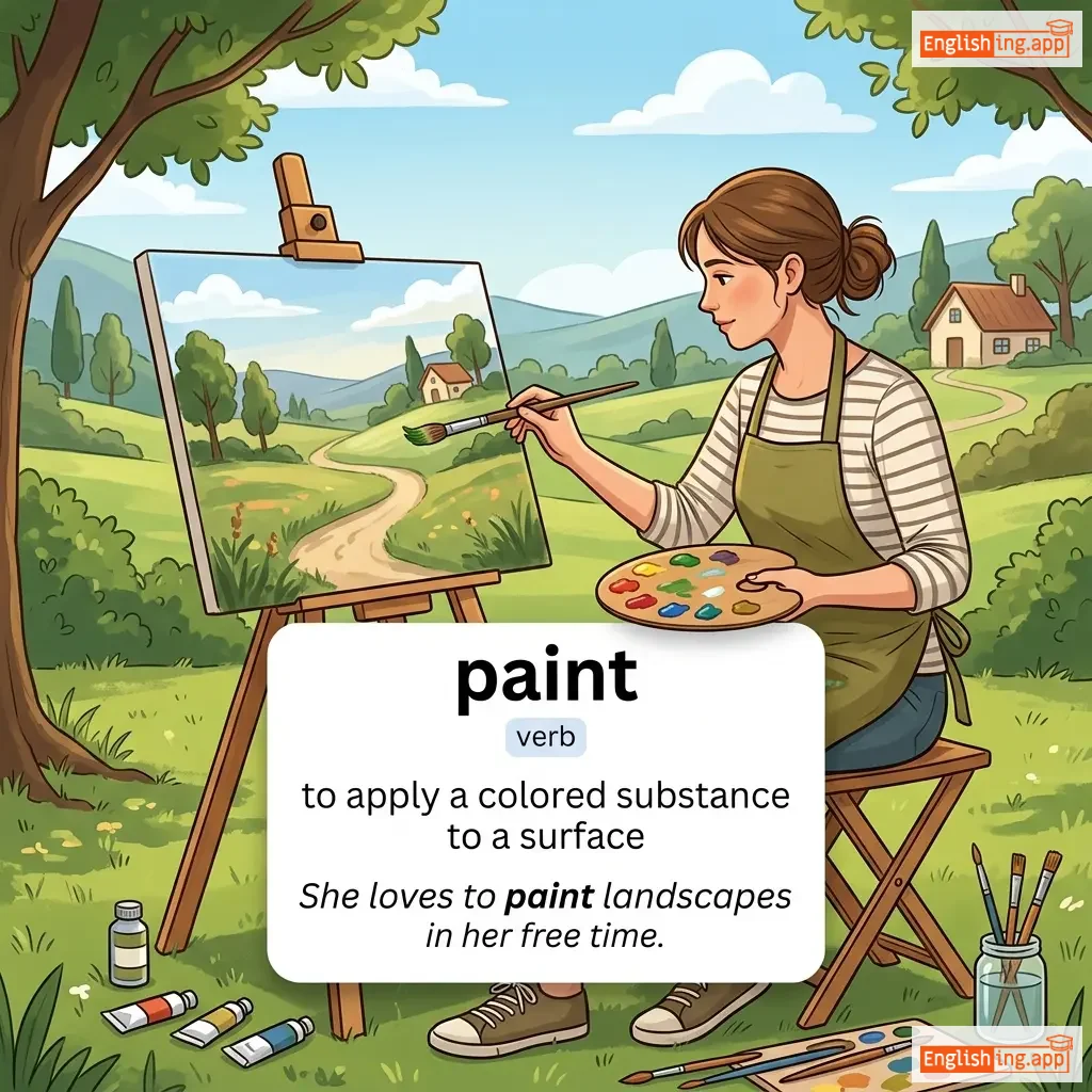 Huàjiā zài huàbù shàng chuàngzuò le měilì de fēngjǐng.